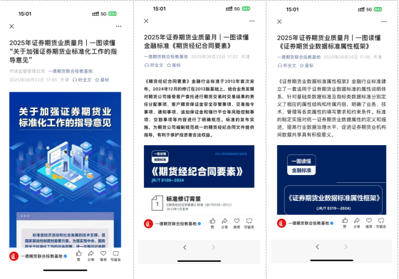 为深入贯彻落实国家关于“增强质量意识 推进高质量发展”的战略部署,积极响应天津证监局2025年全国“质量月”活动号召,一德期货有限公司(以下简称“一德期货”)及天津财经大学·一德期货联合投资者教育基地(以下简称“一德期货投教基地”)紧扣证券期货业标准化建设主线,以“强标准、优服务、促共识”为目标,于2025年9月开展系列主题活动,现将活动开展情况总结如下: