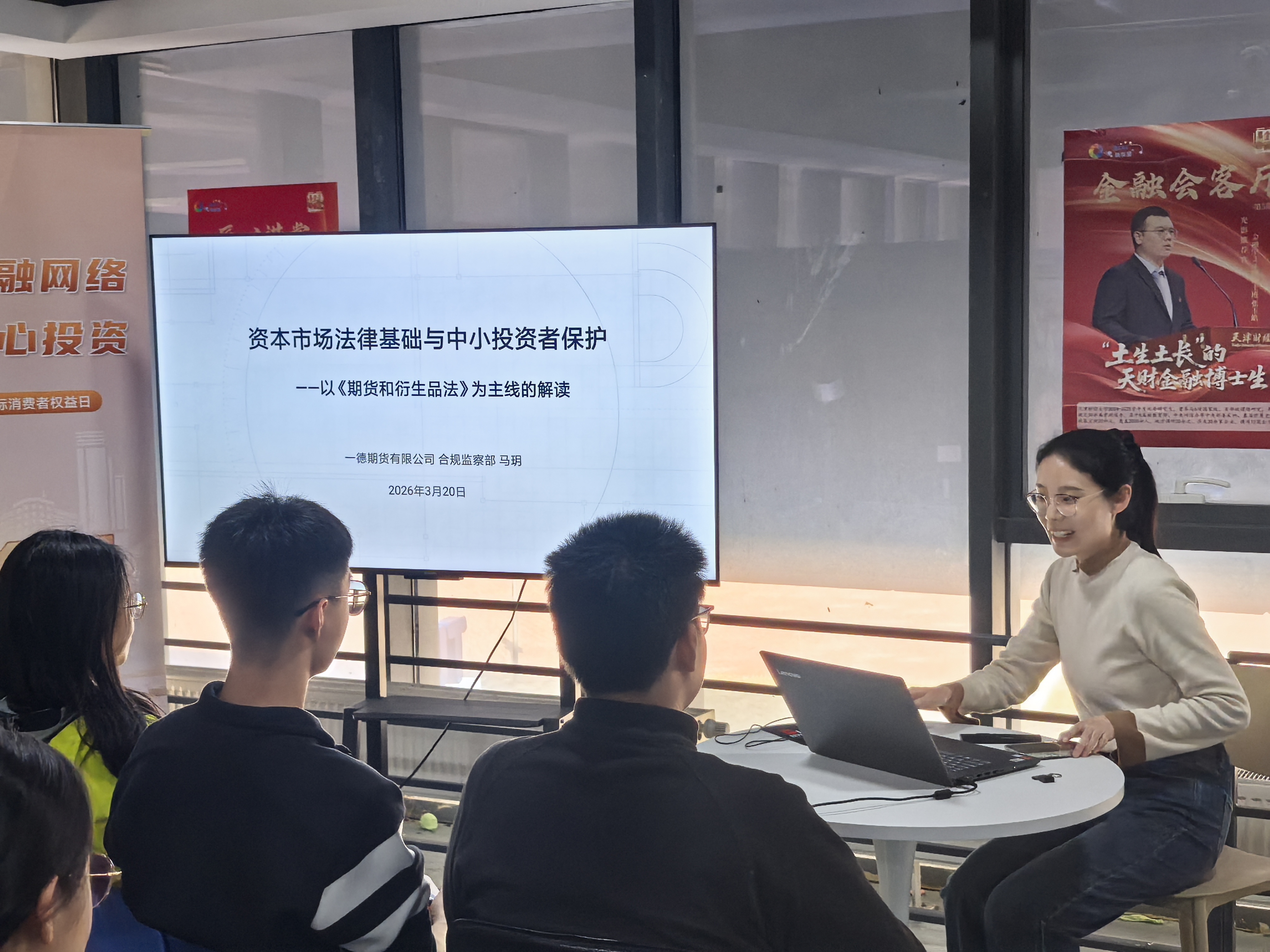 为积极响应监管部门关于投资者保护工作的号召,落实期货经营机构投教主体责任,一德期货有限公司及天津财经大学·一德期货联合投教基地(以下简称“一德期货投教基地”)于2026年3月20日,在天津财经大学成功举办“DCE·中小同行——‘清朗金融网络 守护安心投资’3·15金融消费者保护宣传日”进校园专题培训活动,近40名师生现场参与。本次活动得到大连商品交易所与天津证监局的大力支持,旨在普及金融法律知识,提升大学生群体的风险识别与防范能力。
